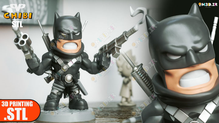 شما می توانید مدل سه بعدی بتمن شوالیۀ شوم Batman Grim Knight Chibi را خریداری و دانلود کنید و در دستگاه پرینتر سه بعدی خود آن را بسازید. فرمت فایل این مدل STL است.