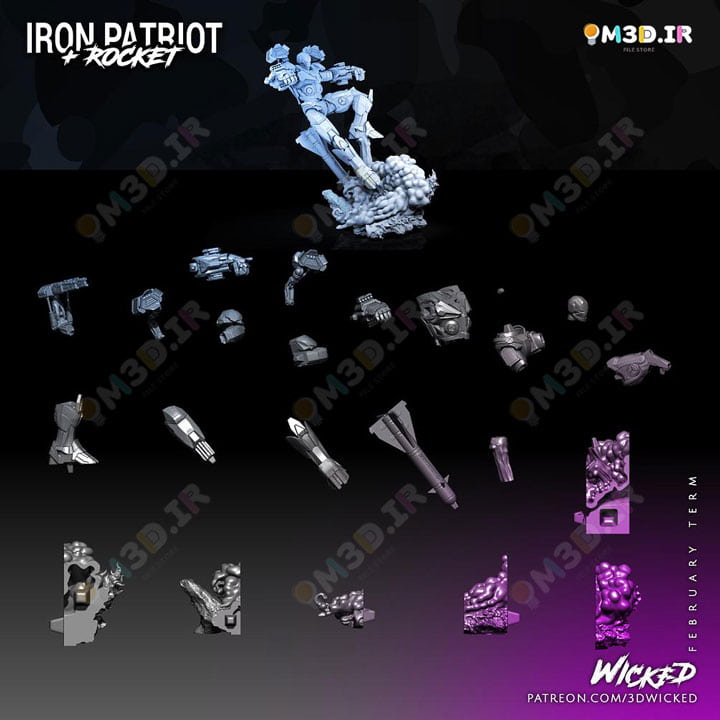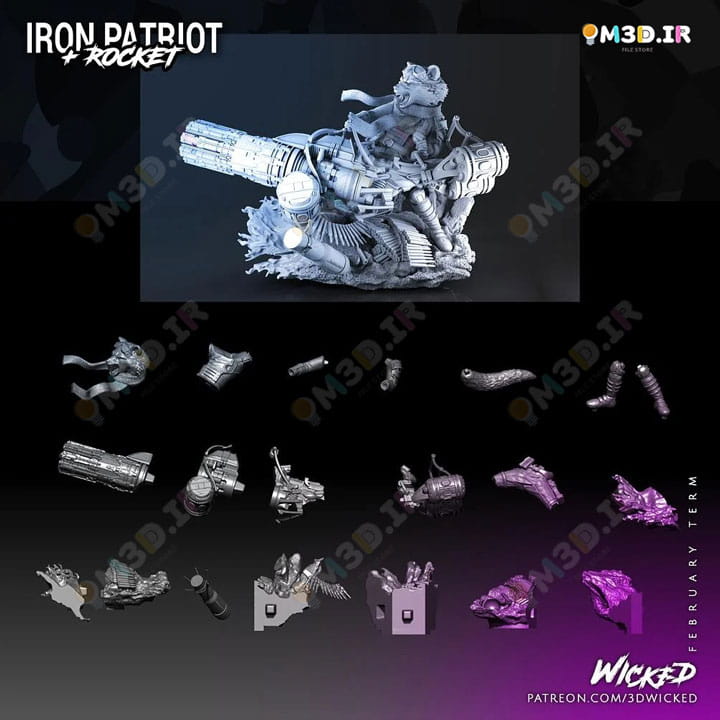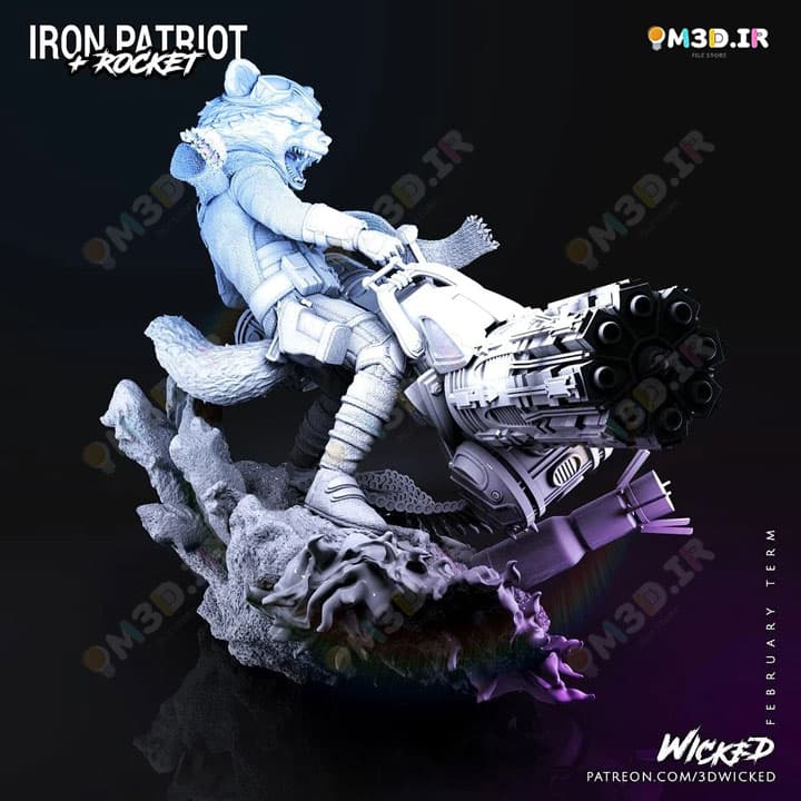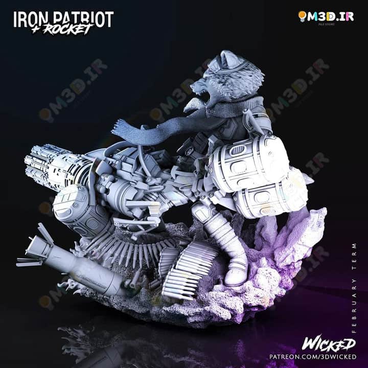 شما می توانید مدل سه بعدی راکت راکون و آیرون پاتریوت Rocket Racoon and Iron Patriot را خریداری و دانلود کنید و در دستگاه پرینتر سه بعدی خود آن را بسازید. فرمت فایل این مدل STL است.