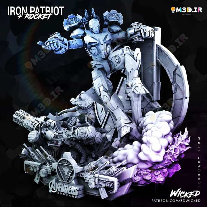 - 3DWicked_Marvel_Avengers_Endgame_Iron_Patriot_+_Rocket_Diorama_Base (M3d.ir)